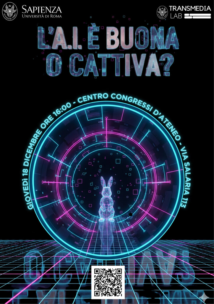 È quanto accade alla Sapienza Università di Roma, dove si è svolta la lezione–evento “L’AI è buona o cattiva?”, promossa nell’ambito del corso di Transmedia Studies coordinato dai professori Silvia Leonzi e Riccardo Milanesi, in collaborazione con il Transmedia Lab del Dipartimento di Comunicazione e Ricerca Sociale (CoRiS).